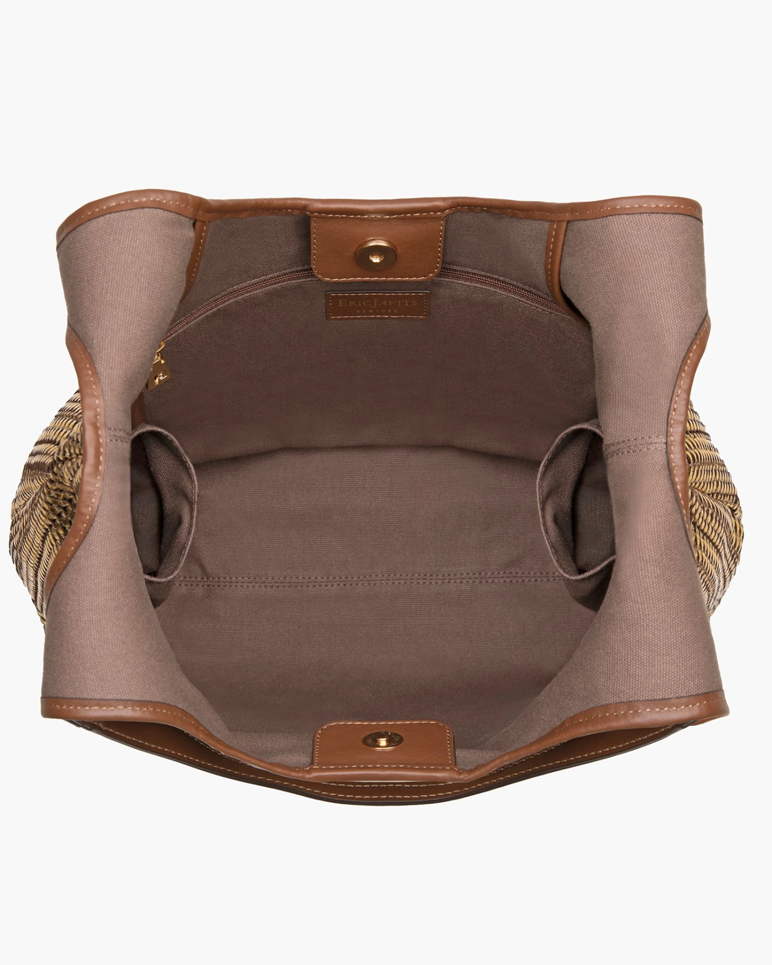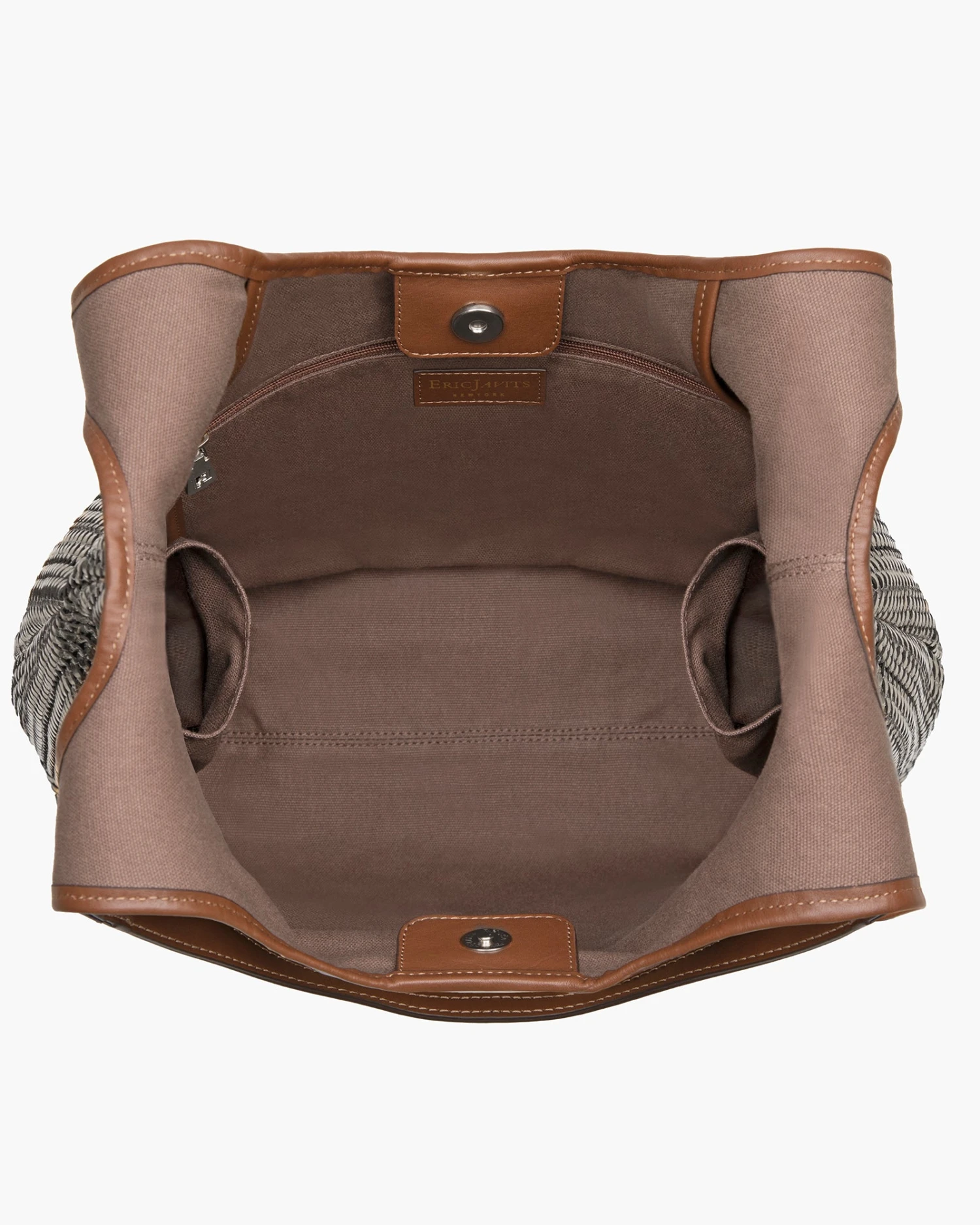 Inside: magnetic snap closure, durable yet soft canvas lining, sidewall zipper compartment and dual patch pockets.