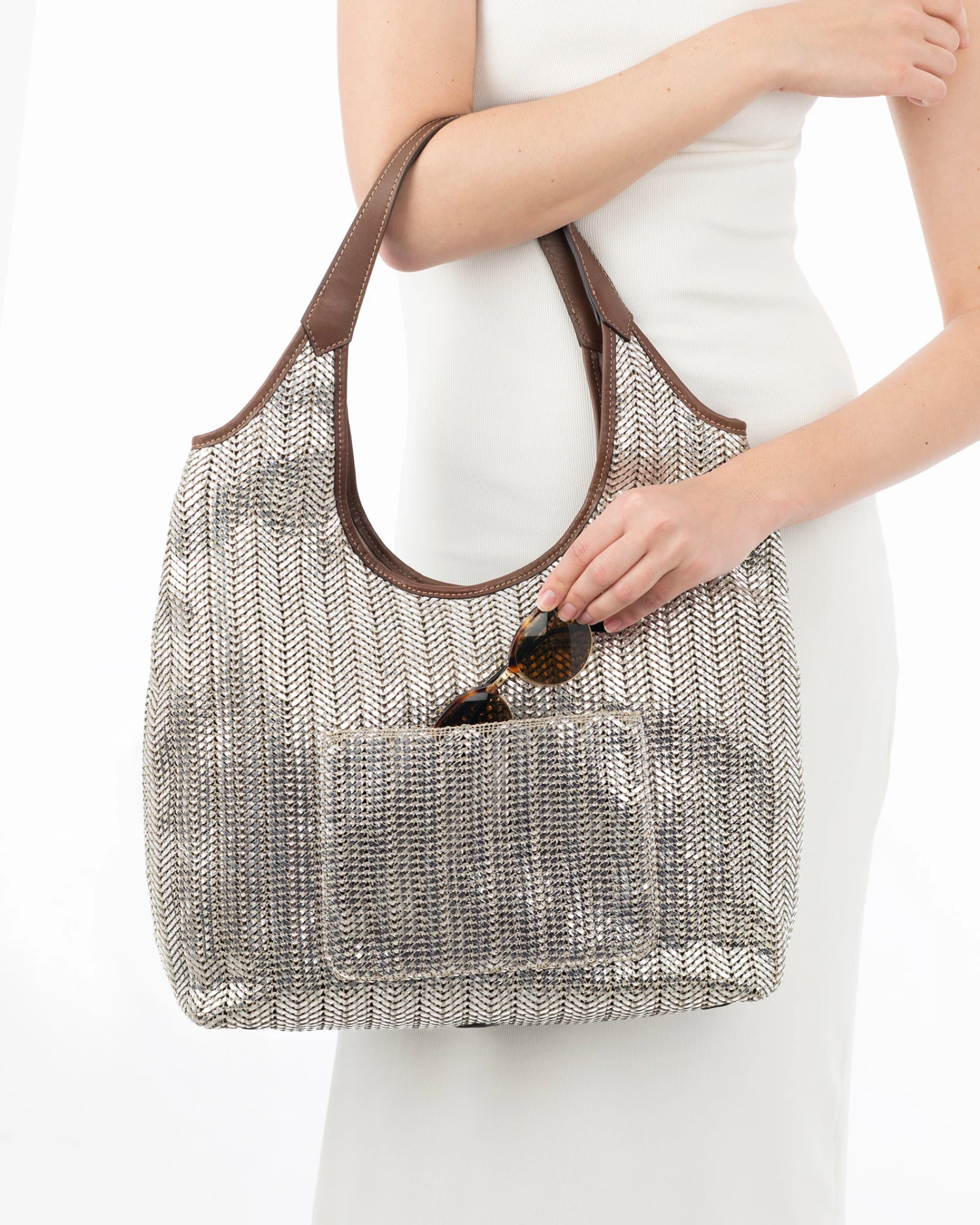 A women’s Hobo bag for sale online with dual handles and bohemian flair to spare!