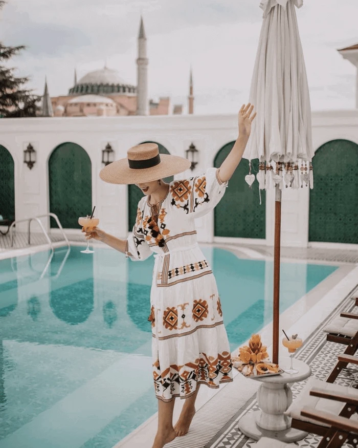 The Bey hat is a flat-brimmed shape made of Squishee® popularized by the singer-songwriter of that nickname. The dramatic brim is flattering, adds stature, and provides maximum sun protection. This structured shape features a flat-topped crown, banded with cotton grosgrain ribbon finishing to the side in a man-tailored bow.