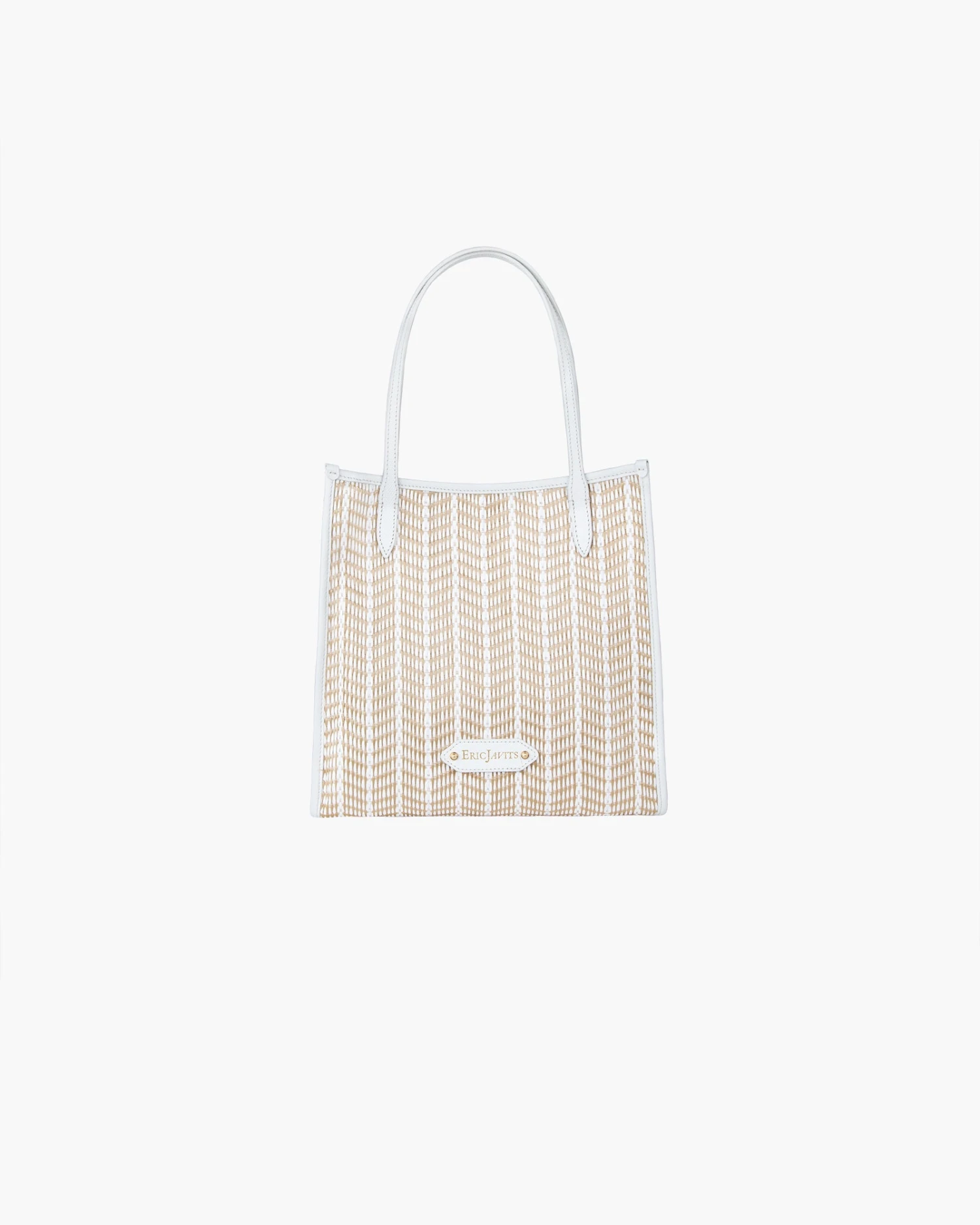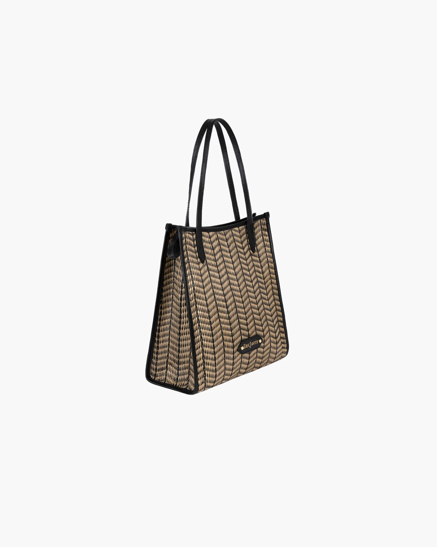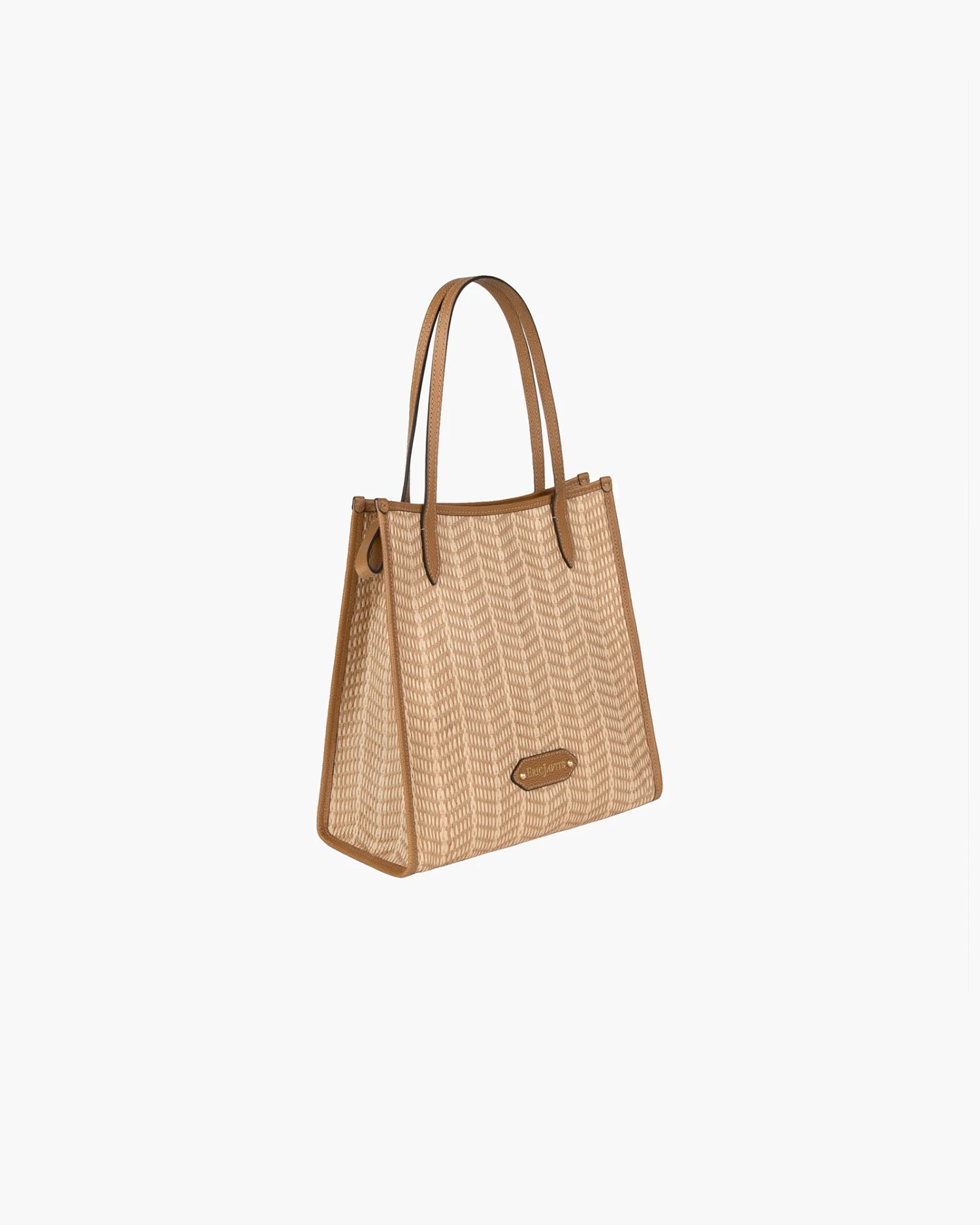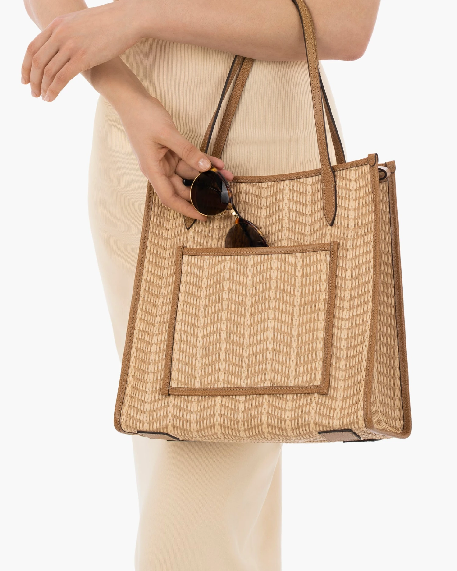 - Woven synthetic raffia with leather trim