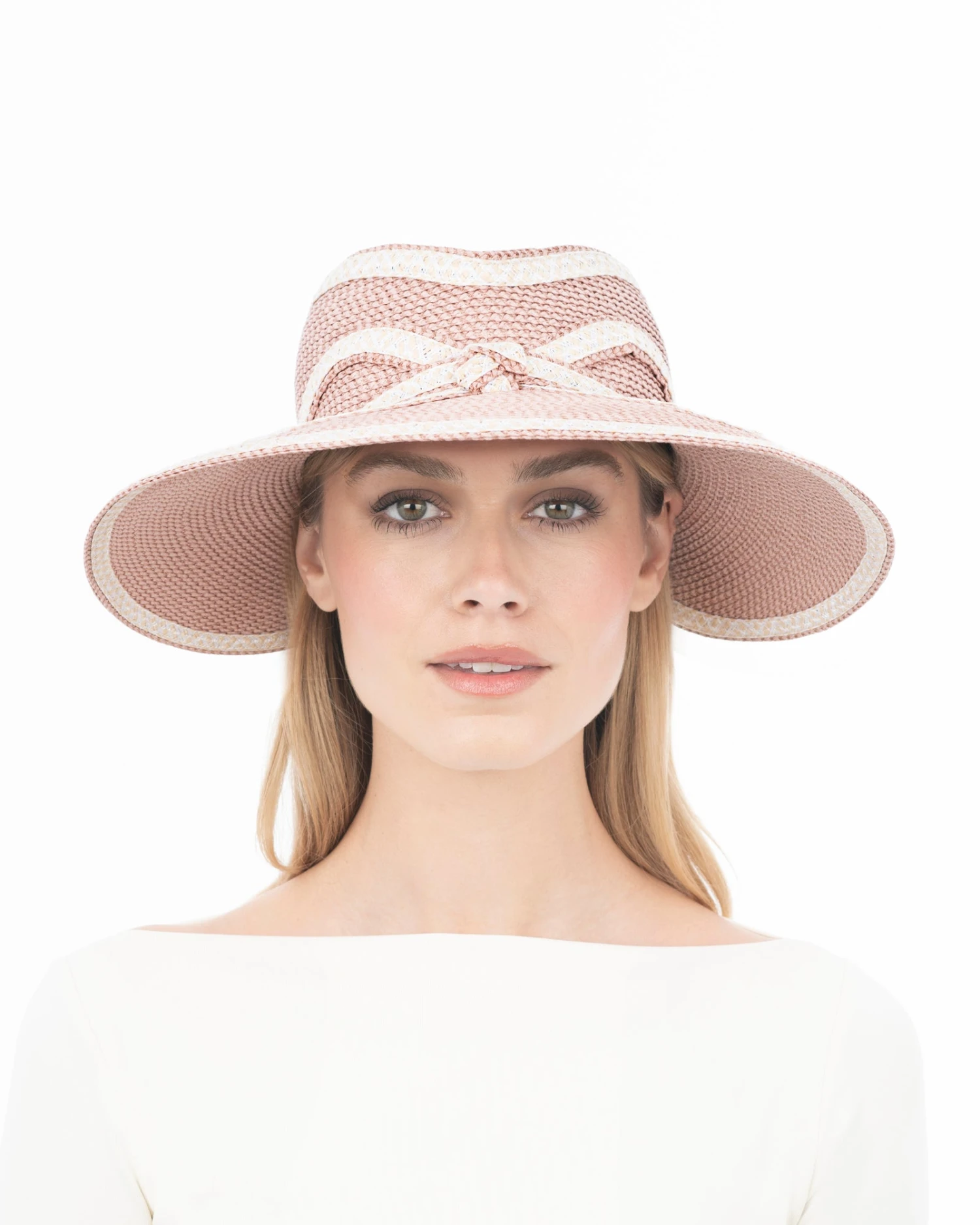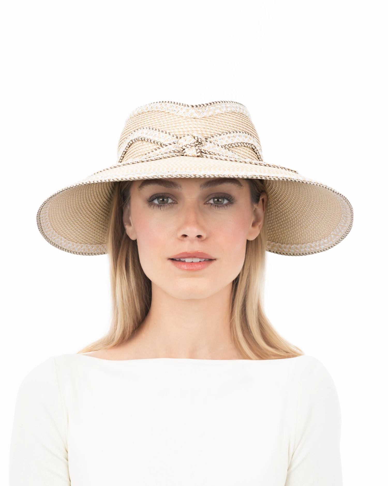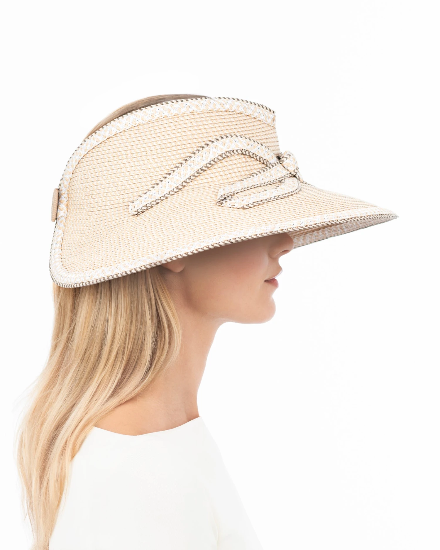 Elevate your glam quotient with this women’s sun visor for sale online of Squishee® straw, featuring an integrated contrast bow and edge detail.