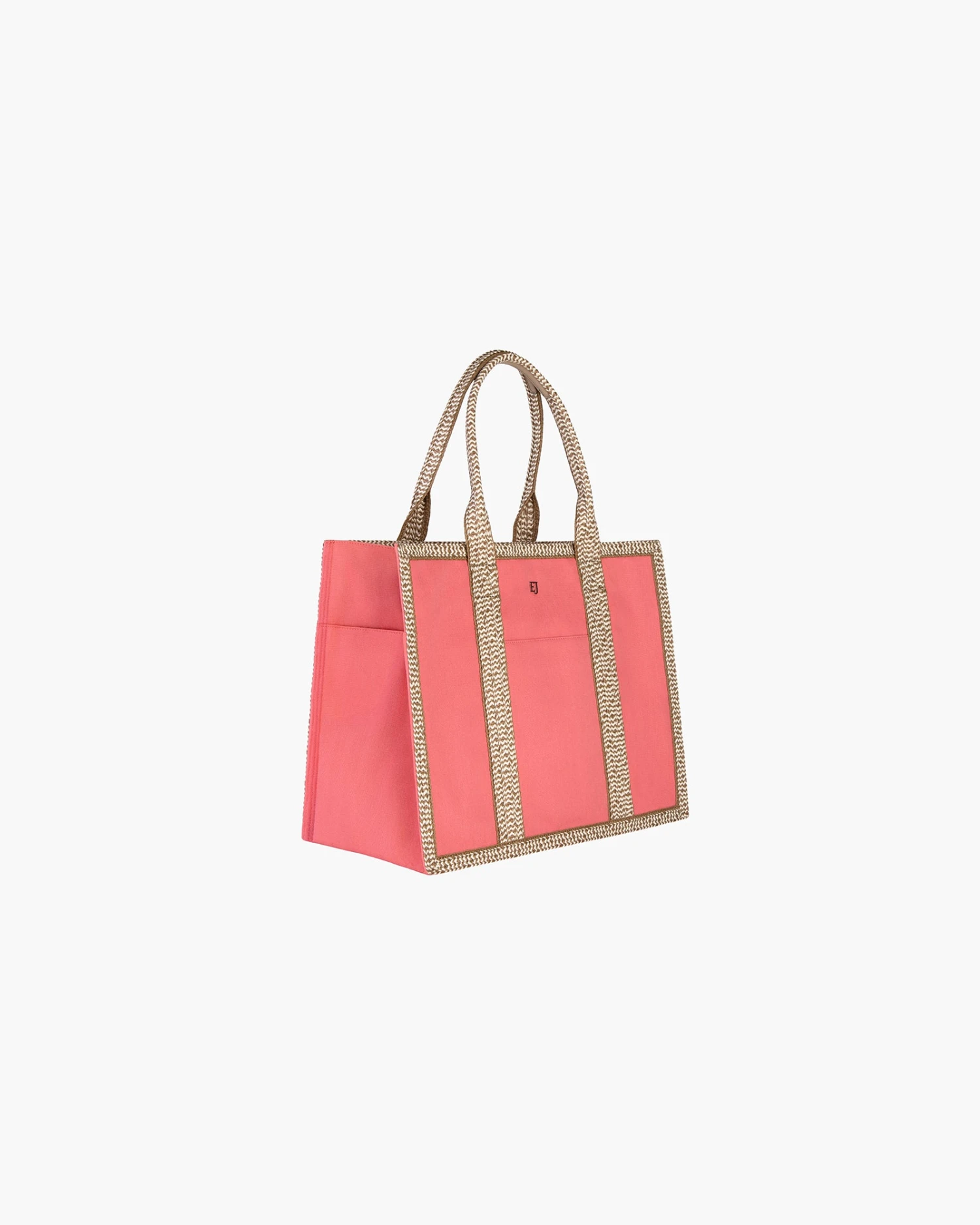 Our Cote d’Azur is a roomy shopper which packs flat for travel and is very sturdy, yet lightweight. Made of water-repellent canvas, this woman’s designer tote for sale incorporates handles and trim of Squishee® braid. Other design features include a zip-top closure, and three convenient outer pockets, one on the front and two on either end of the side gusset.