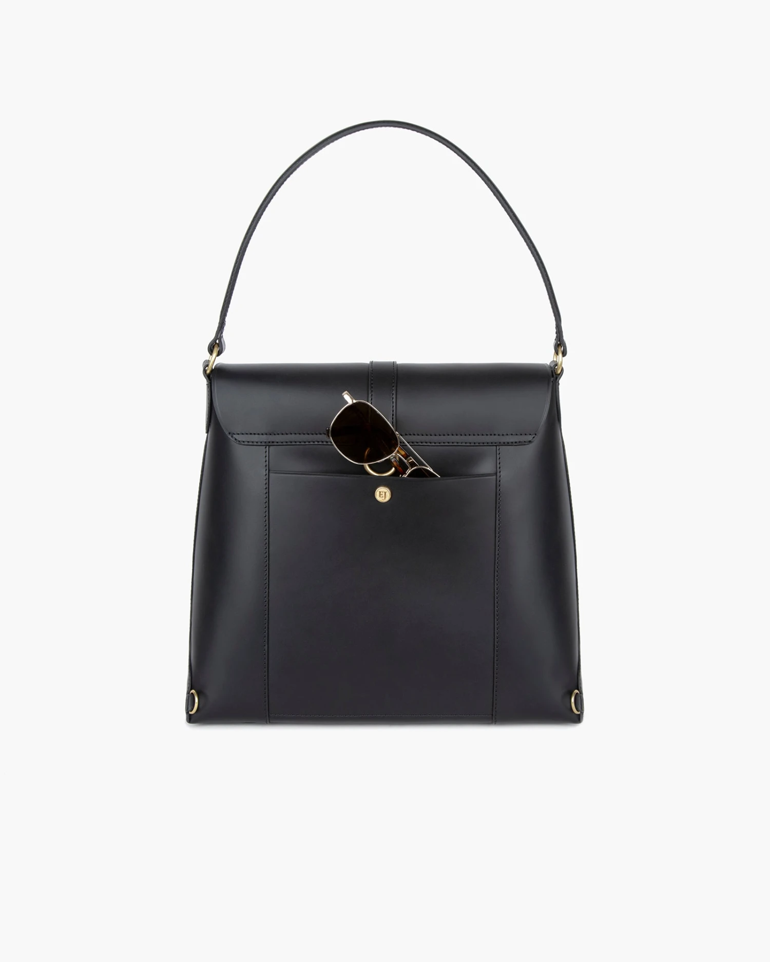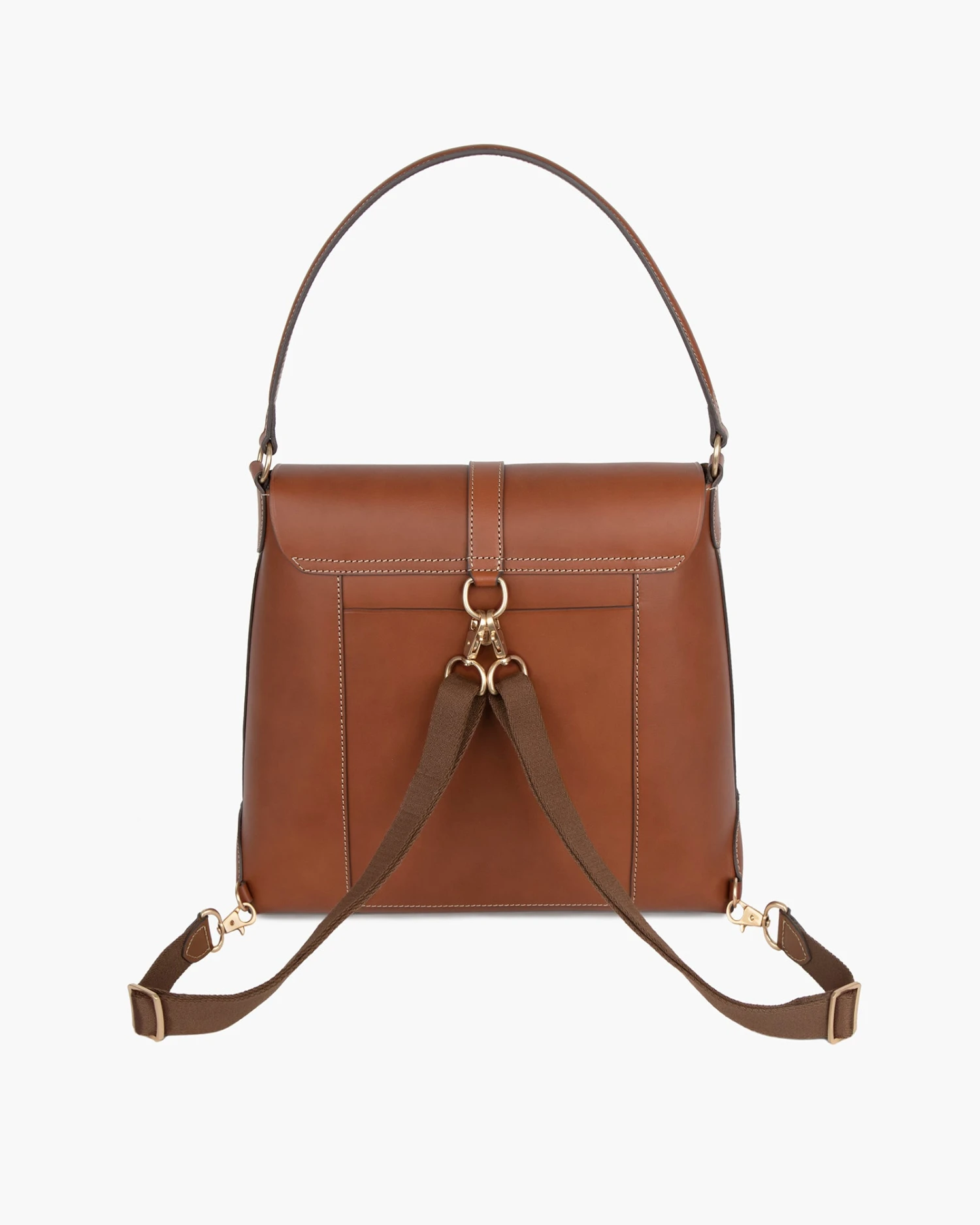 Enjoy the perfection of Italian craftsmanship with this mid-size shoulder bag of vegetable tanned leather which converts to a backpack. This bag ages beautifully over time and softens with wear. The detachable backpack straps adjust with a slide buckle. There are two outer pockets, one on front, under the bag’s flap closure, the other on the reverse side with a snap closure.Â