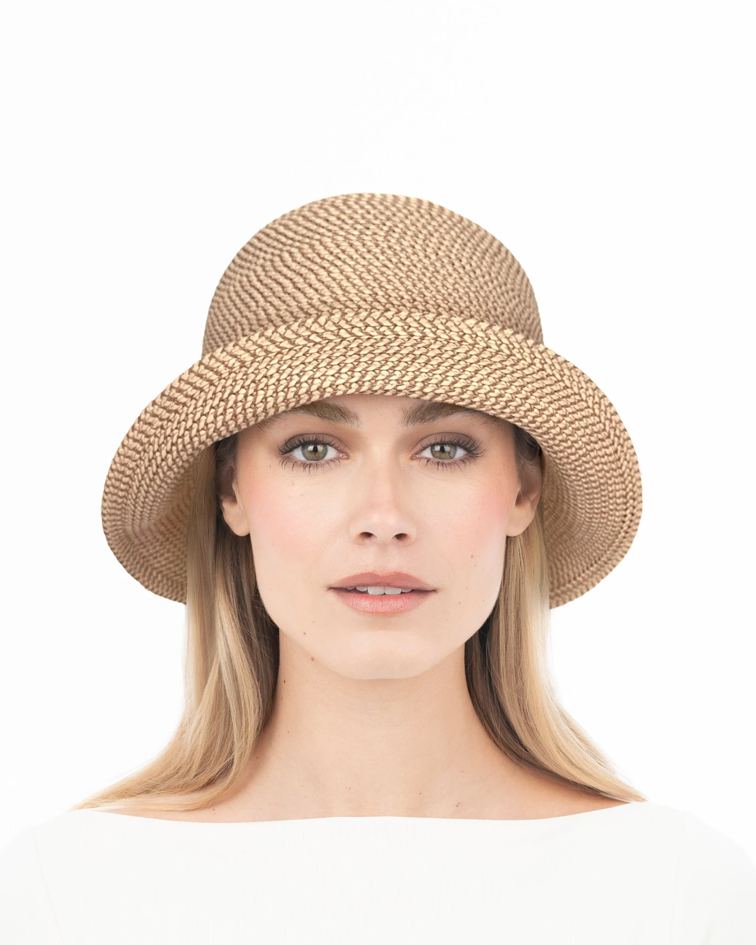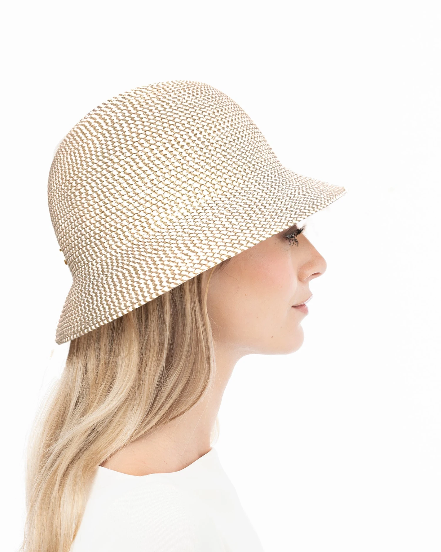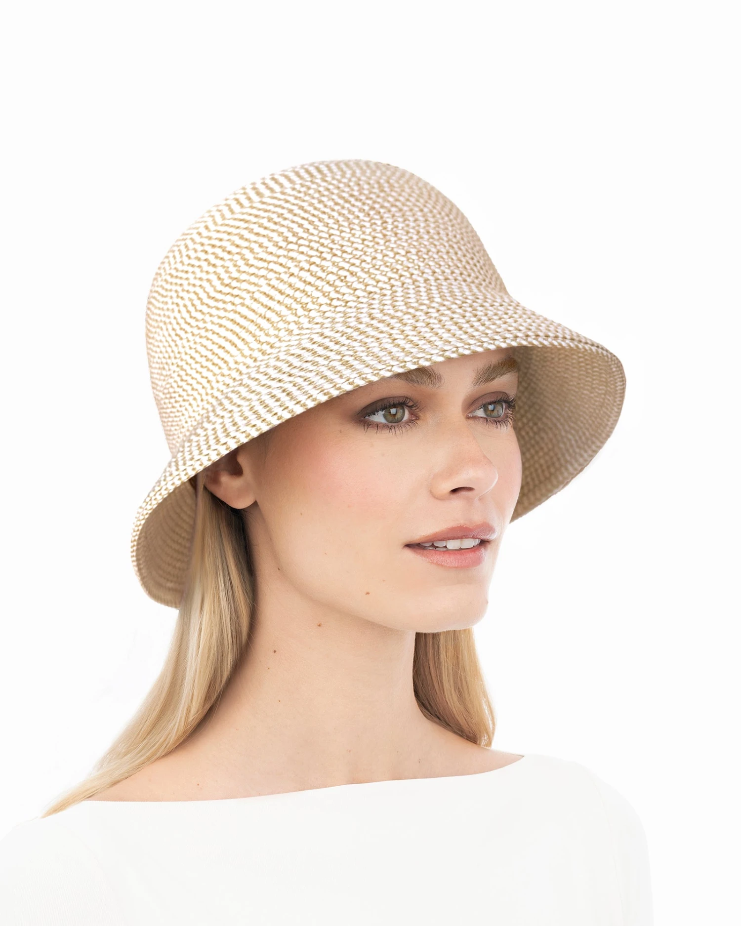A women’s Cloche hat for sale online in Javits’ signature row on row Squishee® packable straw in a shape inspired by hats popularized in the earlier part of the last century.