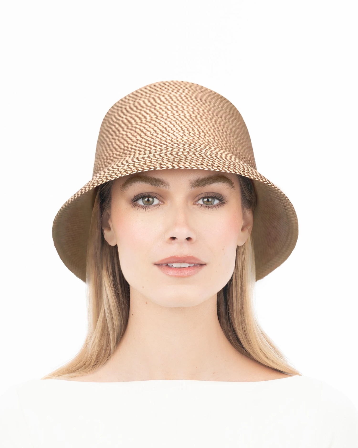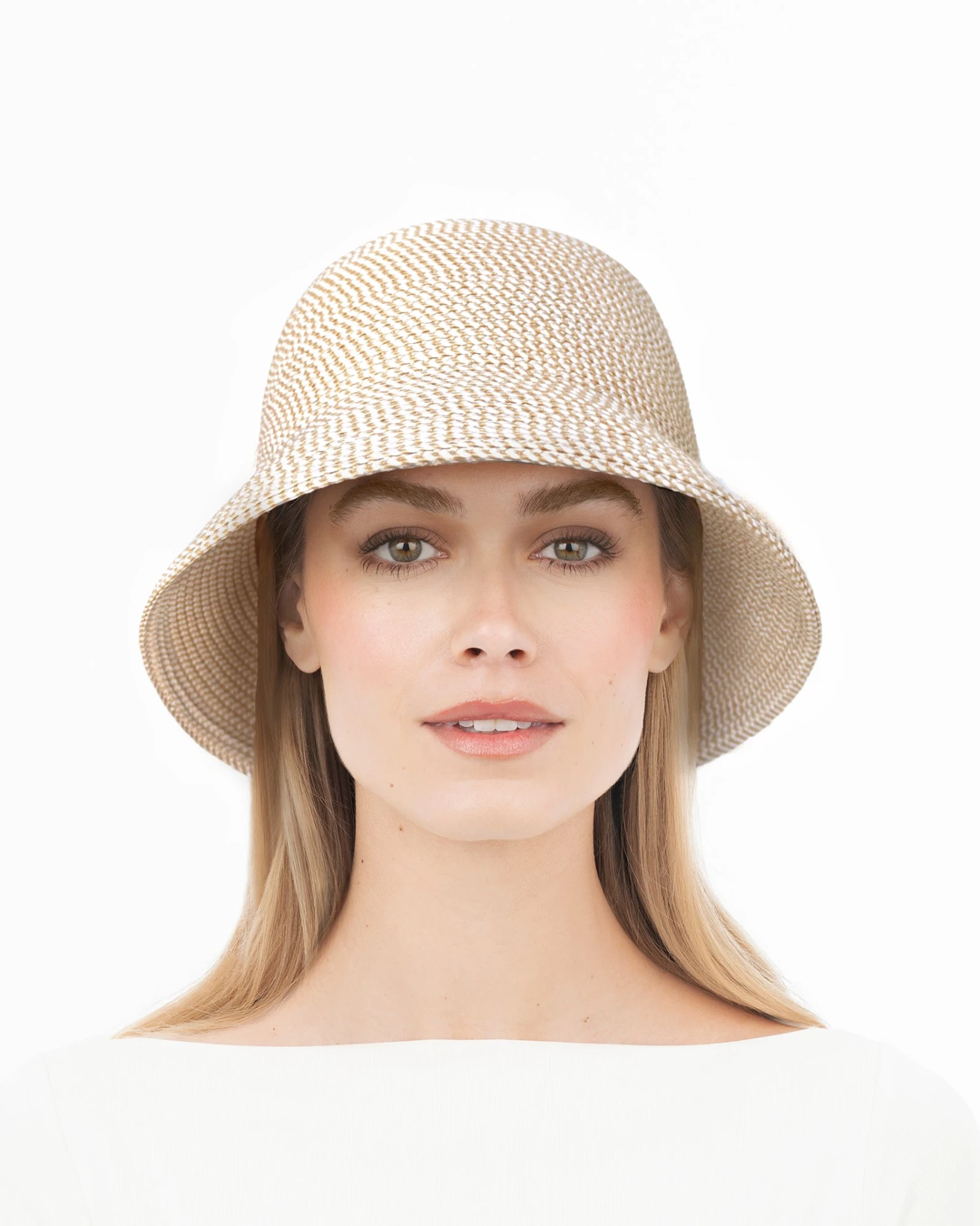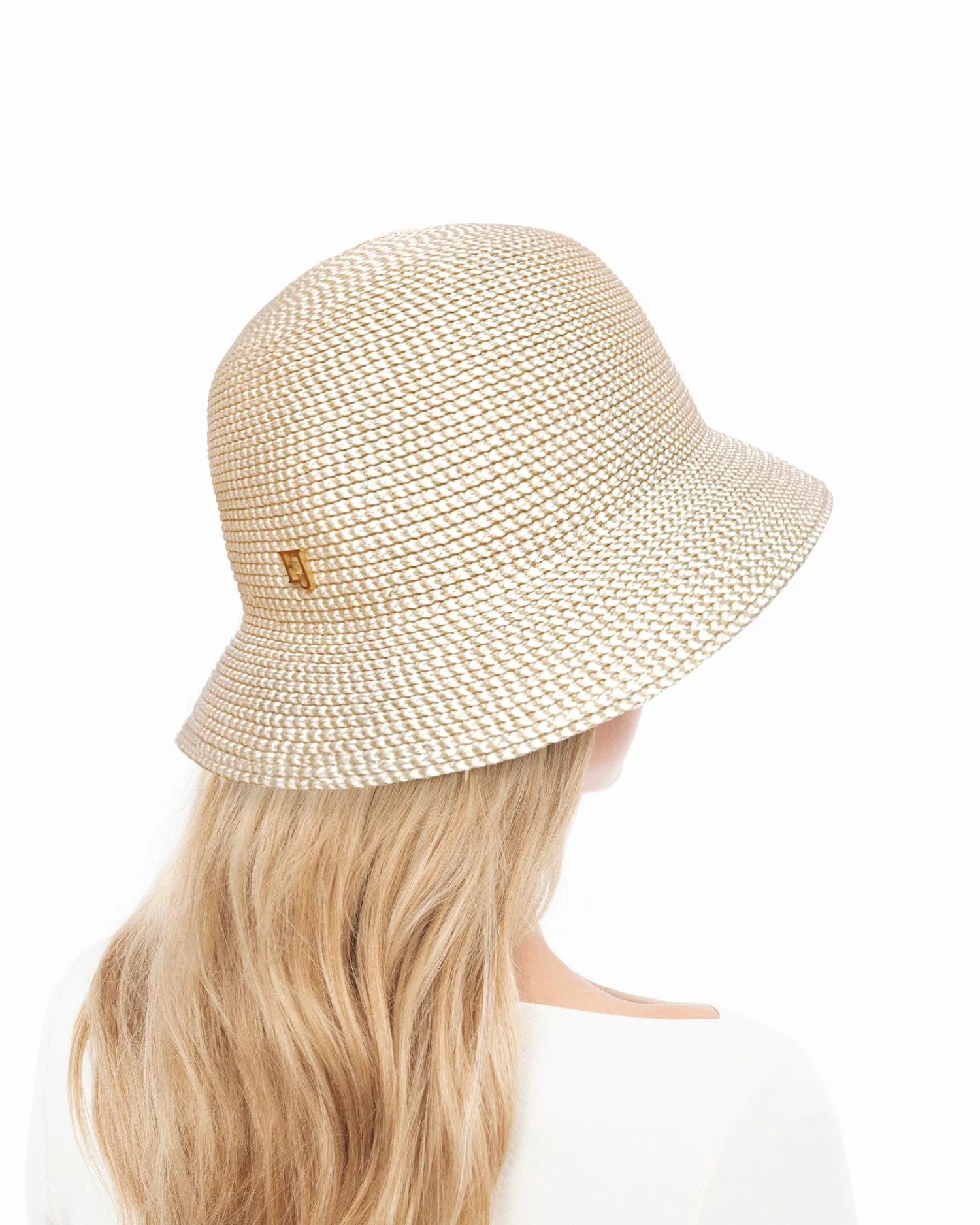 A women’s Cloche hat for sale online in Javits’ signature row on row Squishee® packable straw in a shape inspired by hats popularized in the earlier part of the last century.